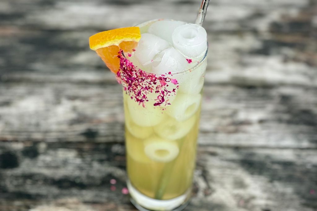 Garnish with a lime wedge and enjoy!